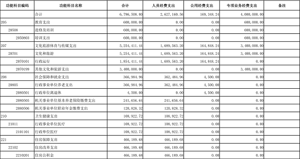 (3)其他文化和旅游支出(2070199)340 万元,较上年减少 60 万元,原因是培训费用从该功能科目中单独列出;