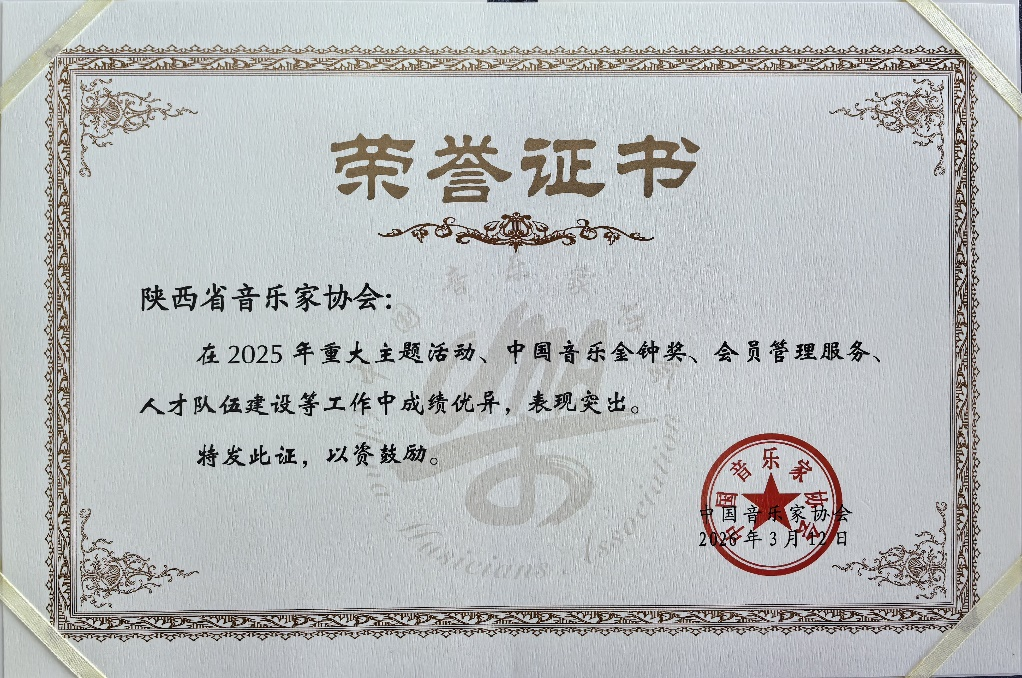 一是强化政治引领,学习教育主题突出。始终把学习贯彻习近平新时代中国特色社会主义思想和党的二十大及二十届四中全会精神作为首要政治任务,不断强化党的创新理论指导陕西音乐发展和实践运用。扎实开展中央八项规定精神学习教育,有力推动干部作风能力提升。二是围绕重点任务,文艺活动特色鲜明。成功举办了2026年陕西新年音乐会;举行2025年“文化和自然遗产日”非遗宣传展示活动暨陕南民歌MV专辑发布仪式;开展“民歌焕彩·时代新声”陕北民歌研讨会暨专题采风创作活动;圆满完成第十届陕西音乐奖声乐比赛暨第十五届中国音乐金钟奖陕西选拔赛;推荐选手参加“唱响黄河”——中国音乐家协会第二届全国声乐展演并获得优秀展演选手和入围选手。“放歌陕北 唱响中国”2025陕北民歌榆林合唱大会成功举办。三是聚焦人才与创作,精品力作不断涌现。省级重点文化精品扶持项目陕北民歌创作有序推进,“民歌焕彩·时代新声”陕北民歌创作大赛圆满收官。原创歌曲《咏终南》在主流平台同步上线。邀请“中国夜莺”——迪里拜尔教授开展声乐教学专家课,民族男高音歌唱家、民族声乐教育家、一级演员,中国·东盟艺术学院院长郁钧剑主讲民族唱法的现状以及应有的独立性格。出版、发行《音乐天地》(音乐教育、音乐创作)24期200余万字。扎实组织中国音协音乐考级陕西考区工作。四是紧盯重大赛事,斩获多项国奖、省奖。大型民族管弦乐组曲《永远的山丹丹》荣获第十五届中国音乐金钟奖作品奖;全省宣传部长会议表彰精神文明建设“五个一工程”优秀成果,省音协选送的两部作品获表彰;陕西省首届“志愿三秦”项目大赛,陕西音协参赛项目“唱响新时代”文艺志愿服务活动获得大赛铜奖。五是坚持以人民为中心,文艺“六进”精彩纷呈。一年来在全省各地组织了12余场高质量的文艺“六进”志愿服务活动,参与艺术家、音乐工作者及志愿者760余人次;线上线下受益群众约20000余人次,实现活动常态化、服务精准化、品牌特色化。全年活动坚持“送文化”与“种文化”相结合,既奉献交响乐、民乐、陕北民歌、西安鼓乐、笛箫雅集等高品质演出,也开展声乐、器乐、合唱指挥、非遗传承等公益培训,用音乐凝聚人心、滋养精神、服务大局,彰显了陕西音乐界的责任与担当。