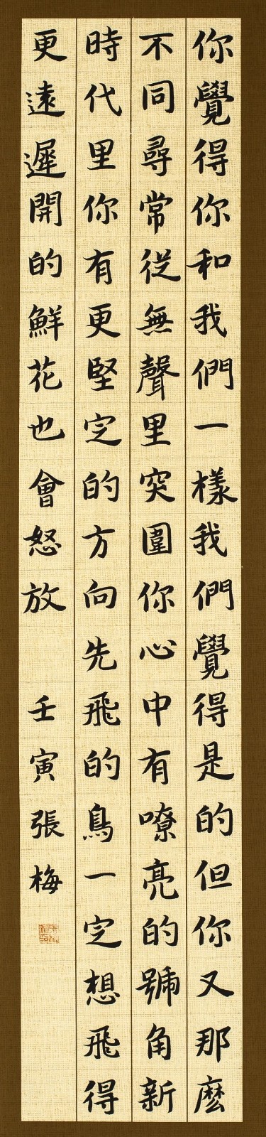 近年来,榆林市书法家协会秉承“继承传统,守正创新”的理念,开拓进取,大胆创新,书法综合实力有了长足的进步,成为全省的一支“生力军”。其中,榆林女书法家发挥了重要作用,她们既能坚守经典,又能求新求变,为榆林市书法事业的发展做出了贡献。本届展览自征稿以来,得到了全市女书家的积极响应和热情参与,共收到投稿作品200余件,最终评出入展作品103件。从入展作品来看,有三个特点:一是能够根植书法传统,翰不虚动,下笔有由,作品中传达着对传统经典的热爱;二是作品思想性较强,心系家国,关心时代,作品中传达着满满的正能量;三是学古而不泥古,气息古雅,敢于出新,作品中传达着女性书法家的审美意蕴。